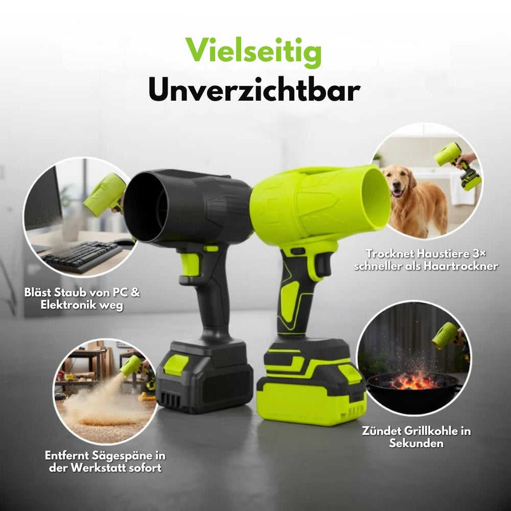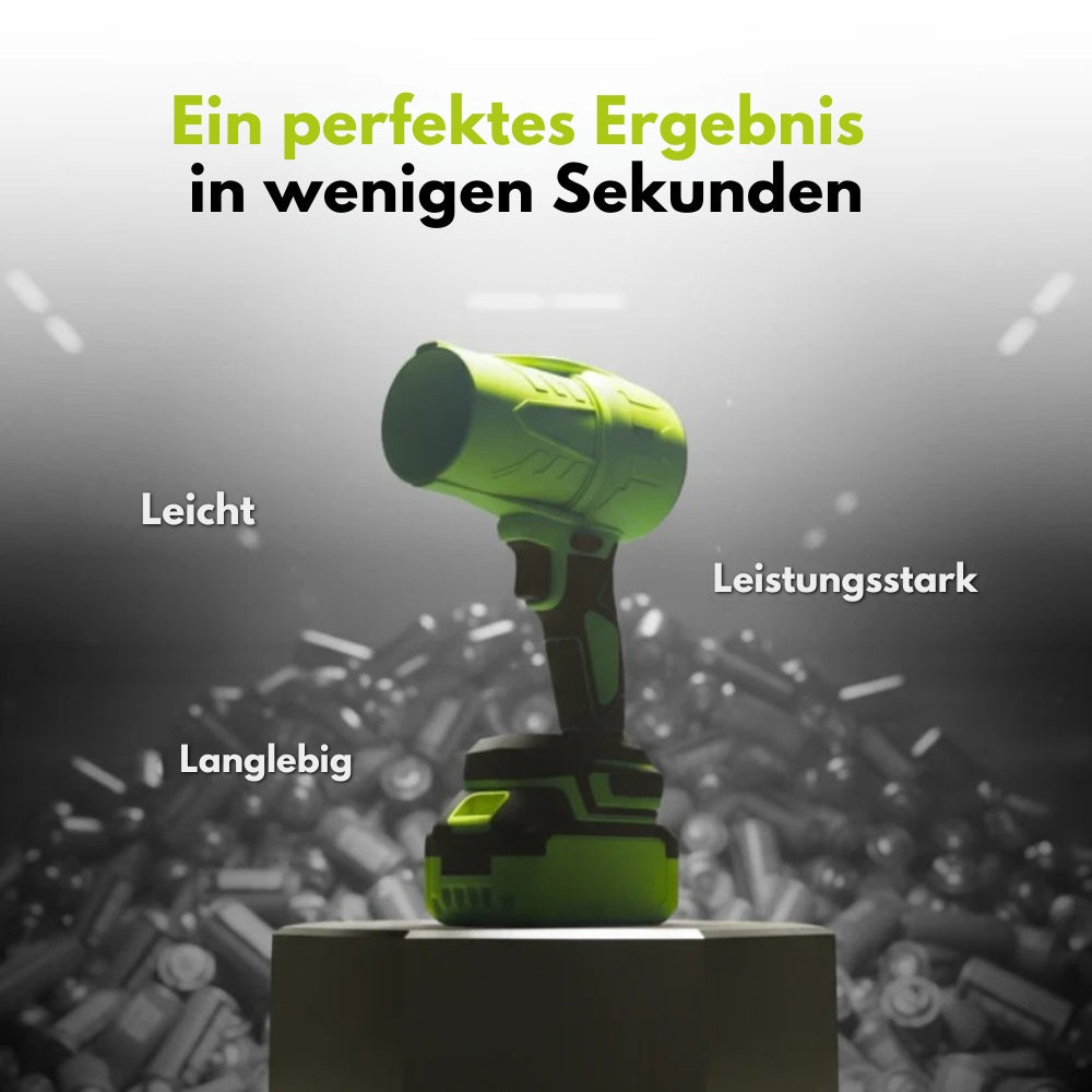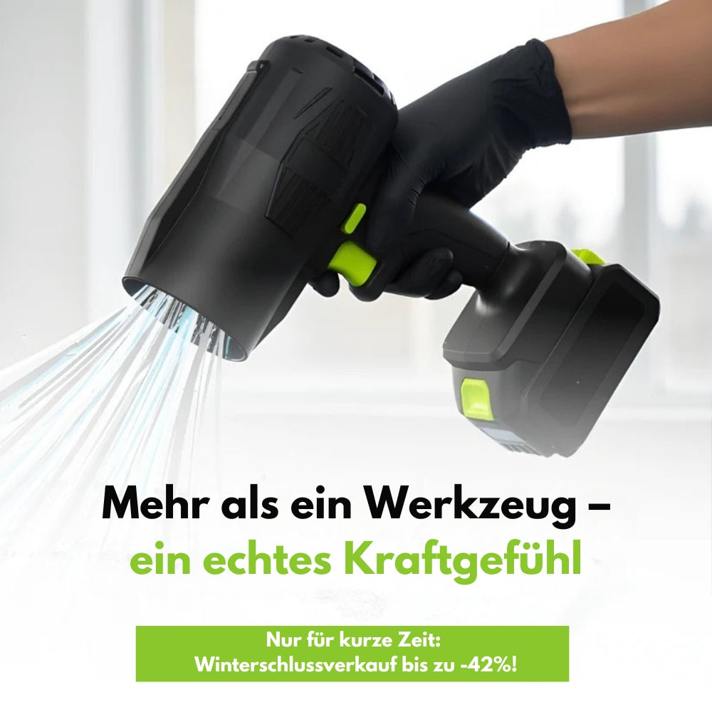 Er ist beeindruckend. Es fühlt sich an wie ein tragbares Düsentriebwerk. Stark genug, um Wasser aus mehreren Metern Entfernung von einem Auto zu blasen, und problemlos in der Lage, schwere Verschmutzungen und dichten Staub zu entfernen, an denen normale Bläser scheitern.